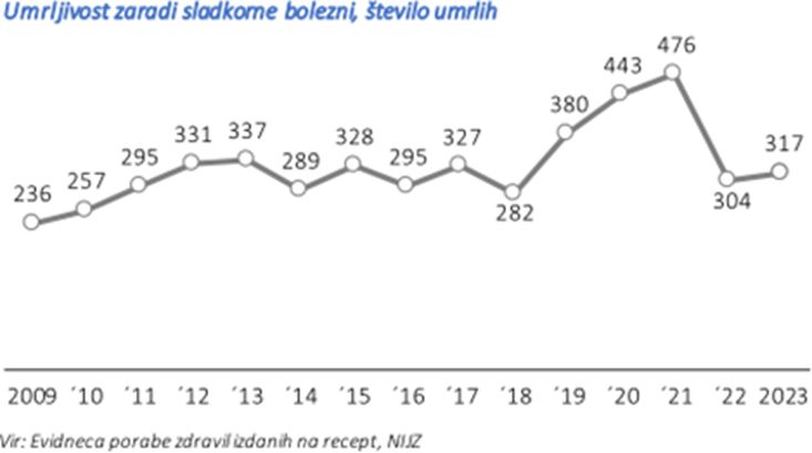 Slika 6: Umrljivosti zaradi sladkorne bolezni, Slovenija, 2009 -2023