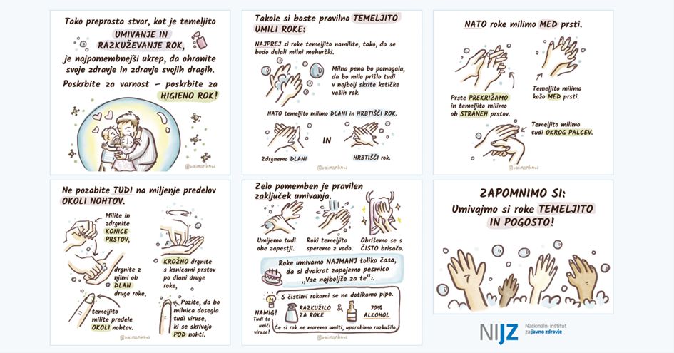 Ti na kožo rok zaidejo ob stiku z različnimi predeli našega telesa in pri stiku z okuženimi osebami, predmeti ali površinami. Ko se z onesnaženimi rokami dotikamo svojega telesa, predvsem ust, nosu ali oči, povzročitelje bolezni vnesemo v telo. Tako se lahko okužimo, zato je pomembno, da se z neumitimi ali nerazkuženimi rokami ne dotikamo obraza, zlasti ne ust, nosu in oči. Z onesnaženimi rokami lahko prenašamo povzročitelje bolezni tudi na druge osebe ter predmete in površine, ki se jih dotikamo. Ko se onesnaženega predmeta ali površine dotakne druga oseba, lahko pride do prenosa okužbe. Če smo se kaj naučili v času epidemije covida-19 je to zavedanje o pomembnostih higiene rok. Ta je postala nepogrešljiv del našega vsakdana in dejanje, ki rešuje življenja. Na Nacionalnem inštitutu za javno zdravje zato tudi letos pozivamo k skrbni in temeljiti higieni rok.