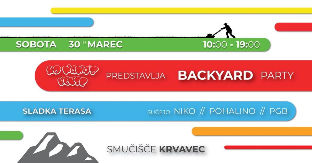 V soboto, 30. marca 2019 od 10. do 20. ure vabljeni na Krvavec na Backyard party. Gondola bo obratovala do 20. ure. Nastopili bodo Niko (komendski žrebec, ki se kali v ritmih techno glasbe že od svojega 16. leta), Pohalino (kamniški virtuoz, ki je ljubezen do elektronske glasbe odkril leta 1998 z obiskom Ambasade Gavioli in s to iskro začel leta 2003 tlakovati pot, ki ga je pripeljala do enega najboljših Dj-ev v Sloveniji) ter PGB (kamniški perspektivni ptič, ki je ponesel izvrstno glasbo pod kamniške planine). Vabljeni!