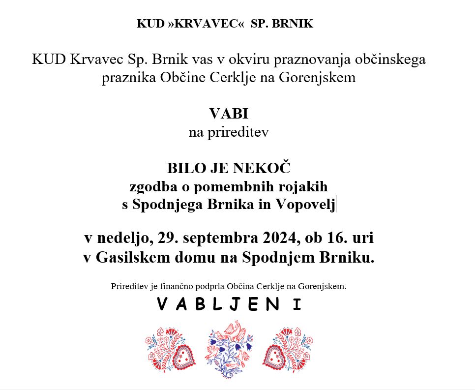 Prireditev predvidevamo v nedeljo, 29. septembra ob 16. uri v dvorani Gasilskega doma na Sp. Brniku.