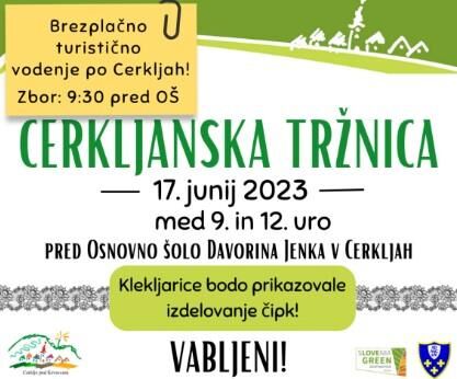 V soboto, 17. 6. 2023 med 9. in 12. uro, vabljeni na Cerkljansko tržnico pred osnovno šolo Davorina Jenka.
