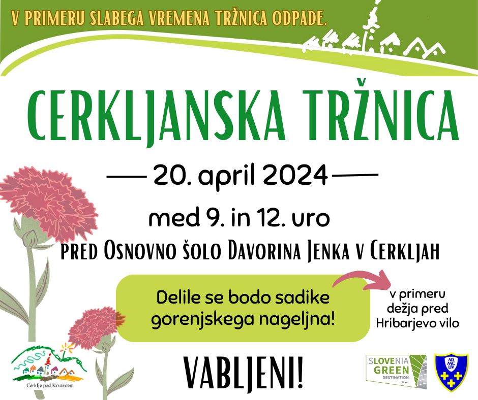 Tržnica bo potekala pod kozolcem na parkirišču pred Osnovno šolo Davorina Jenka v Cerkljah, med 9. in 12. uro.