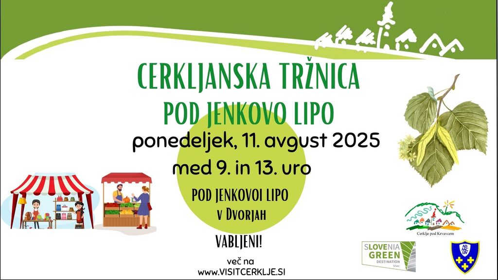 Vabljeni na poletno Cerkljansko tržnico pod Jenkovo lipo, kjer lahko najdete marsikaj uporabnega zase in za vam drage, obisk pa lahko združite s prijetnim klepetom...