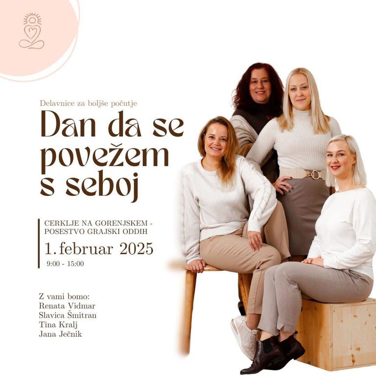 Draga dama, čas je, da se ustaviš, si vzameš trenutek zase in se ponovno povežeš s svojo notranjo močjo. Na enodnevnem oddihu te čakajo štiri skrbno izbrane delavnice, ki bodo poskrbele za tvoje telo, um in dušo ter te napolnile z novo energijo in harmonijo.