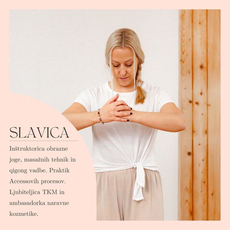 Slavica – Certificirana inštruktorica lifting obrazne joge, masažnih tehnik in qigong vadbe. Access Bars in Access Facelift praktik. Ljubiteljica tradicionalne kitajske medicine ter ambasadorka naravne kozmetike.