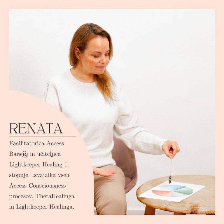 Renata – Facilitatorica Access Bars® in učiteljica Lightkeeper Healing 1. stopnje. Izvajalka vseh Access Consciousness procesov, ThetaHealinga in Lightkeeper Healinga.