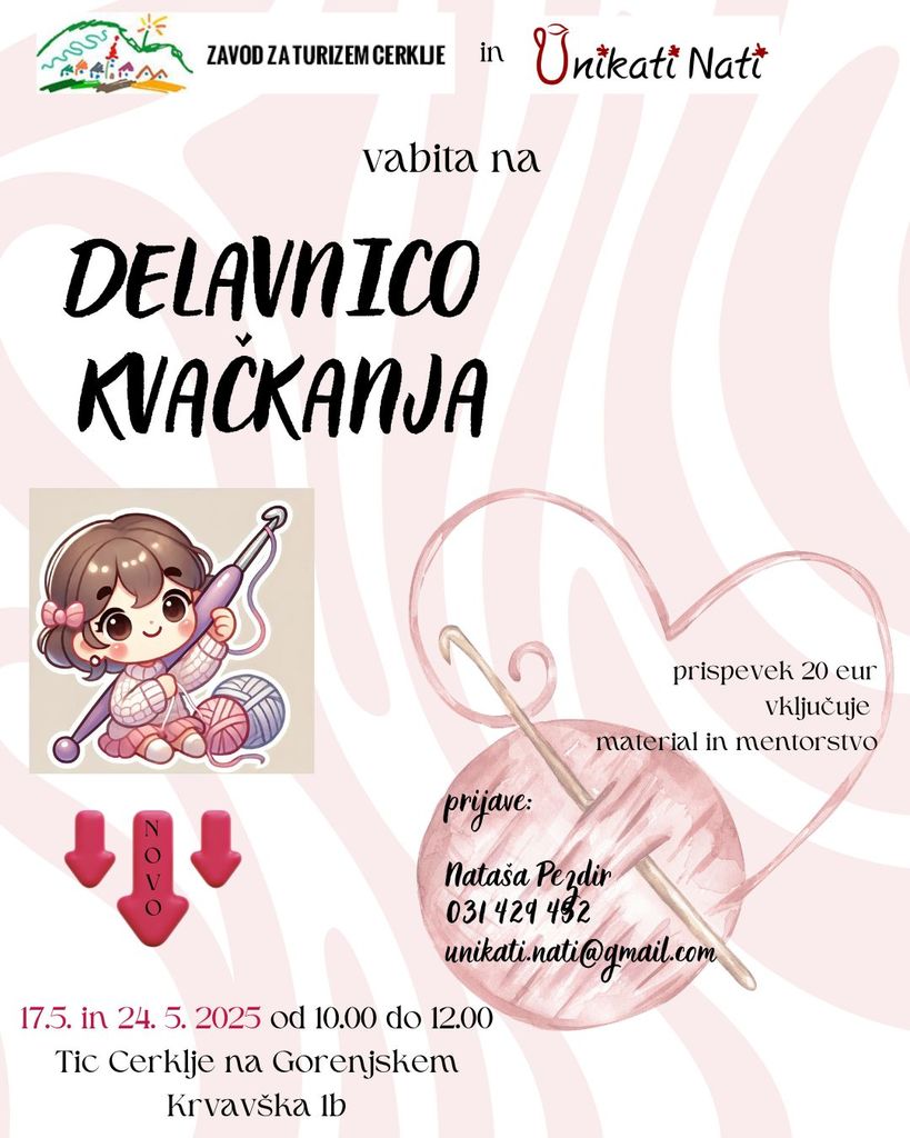 Vabljeni na sproščujočo in ustvarjalno delavnico kvačkanja, kjer boste pod vodstvom izkušene mentorice spoznali osnove te čudovite ročne spretnosti in naredili prve korake v svet kvačkane čipke.