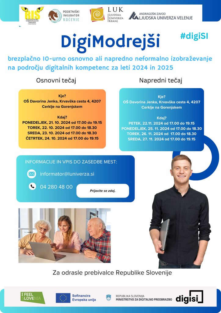Brezplačni 10-urni računalniški tečaji, ki se bodo izvajali v OŠ Davorina Jenka, Krvavška cesta 4, 4207 Cerklje na Gorenjskem: