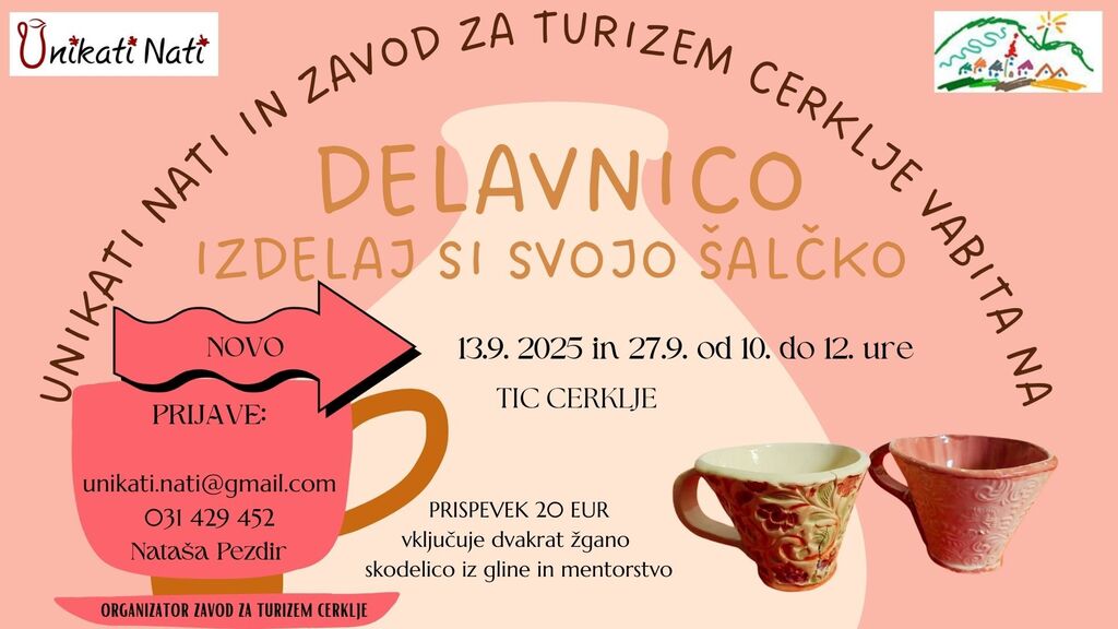 Si želiš ustvariti čisto svojo, unikatno skodelico, ki te bo razveseljevala ob jutranji kavi ali večernem čaju? Pridruži se naši delavnici izdelovanja keramike in se preizkusi v ustvarjalni tehniki valjanja gline.