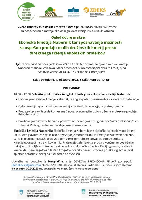 10:00 – 12:00 Celovita predstavitev in ogled dobrih praks ekološke kmetije Nabernik: