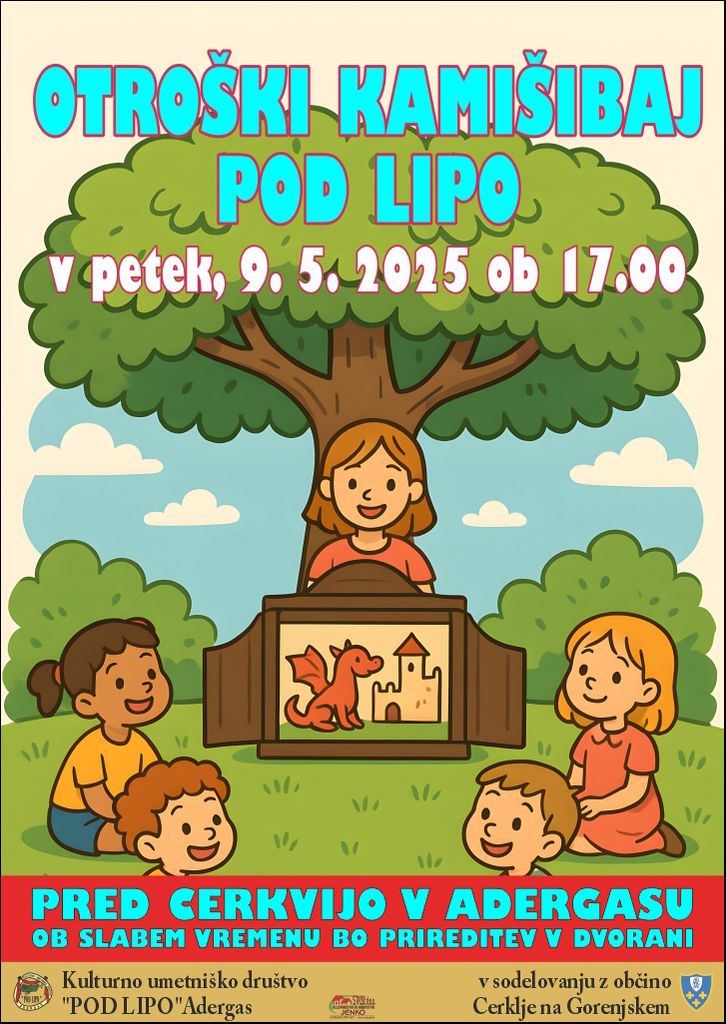 Že 3. lepo povabljeni na kamišibaj zgodbe v Adergas. Dobimo se v parku pred cerkvijo, v primeru slabega vremena pa v dvorani društva.