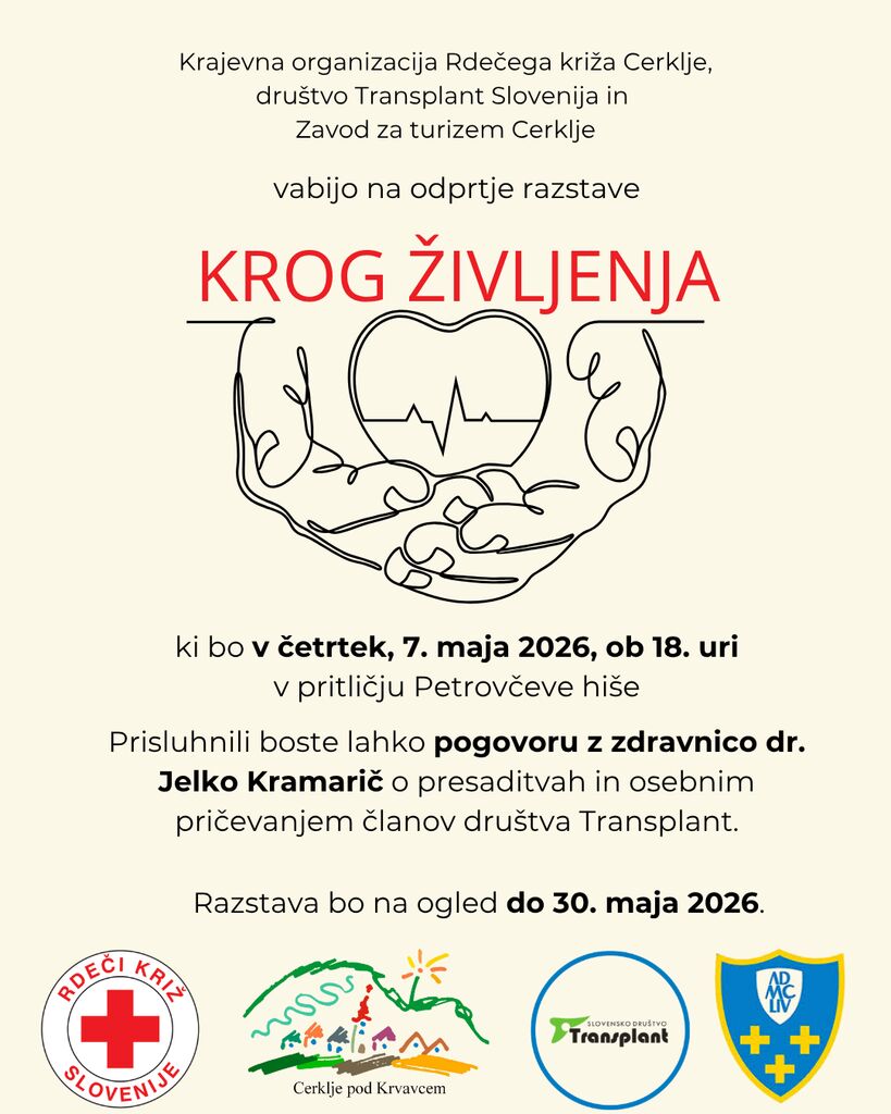 Odprtje bo v četrtek, 7. maja 2026, ob 18. uri v pritličju Petrovčeve hiše v Cerkljah, kjer boste lahko prisluhnili pogovoru z dr. Jelko Kramarič in osebnim zgodbam članov društva Transplant Slovenija.