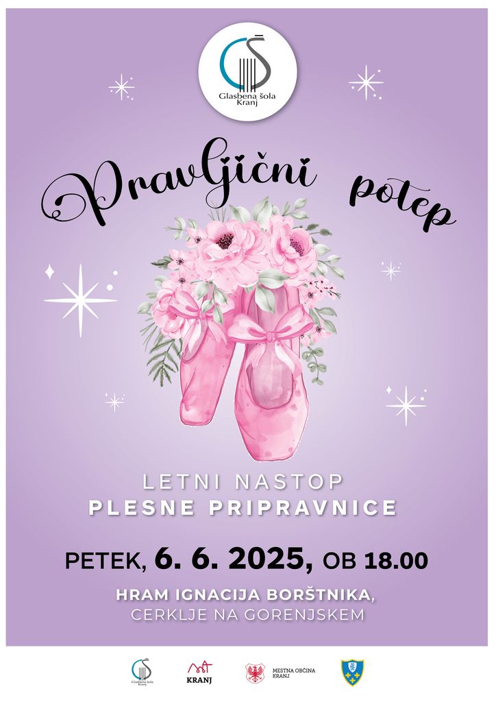 Mladi plesalci bodo obiskovalce popeljali skozi pravljični svet giba in glasbe ter predstavili, kaj so se naučili v letošnjem šolskem letu. Dogodek je plod sodelovanja Glasbene šole Kranj, Mestne občine Kranj in Občine Cerklje na Gorenjskem.