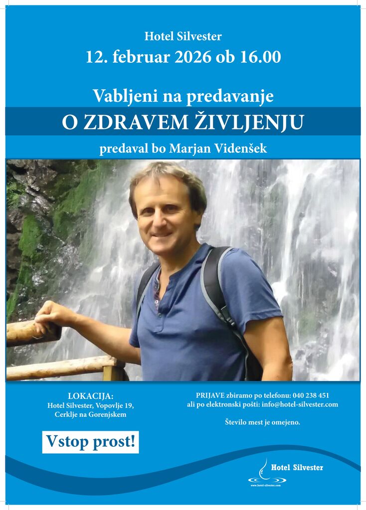 V četrtek, 12. februarja 2026, ob 16.00 bo v Hotelu Silvester v Vopovljah potekalo predavanje z naslovom O zdravem življenju.