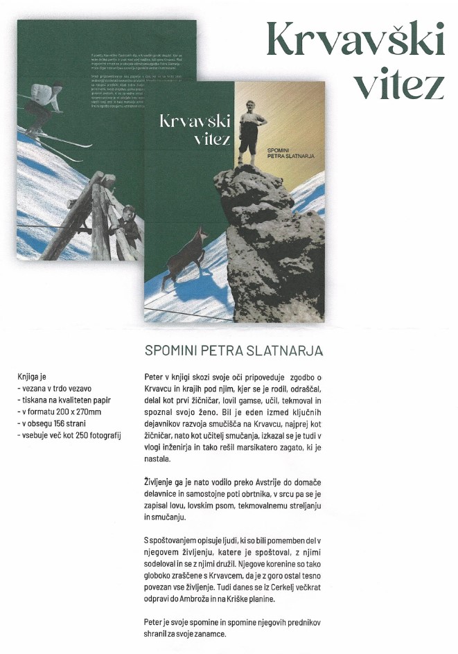 Peter v knjigi skozi svoje oči pripoveduje zgodbo o Krvavcu in krajih pod njimi, kjer se je rodil, odraščal, delal kot prvi žičničar, lovil gamse, učil, tekmoval in spoznal svojo ženo. Bil je eden izmed ključnih dejavnikov razvoja smučišča na Krvavcu, najprej kot žičničar, nato kot učitelj smučanja. izkazal se je tudi v vlogi inženirja in tako rešil marsikatero zagato ki je nastala.
