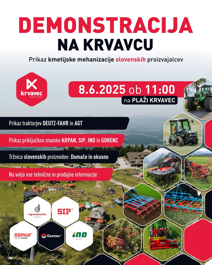 V nedeljo, 8. junija 2025, ob 11. uri, bo na Plaži Krvavec potekal dogodek DEMO KRVAVEC, kjer bo predstavljena sodobna kmetijska in gozdarska mehanizacija v delovnem okolju nad 1600 metri nadmorske višine.