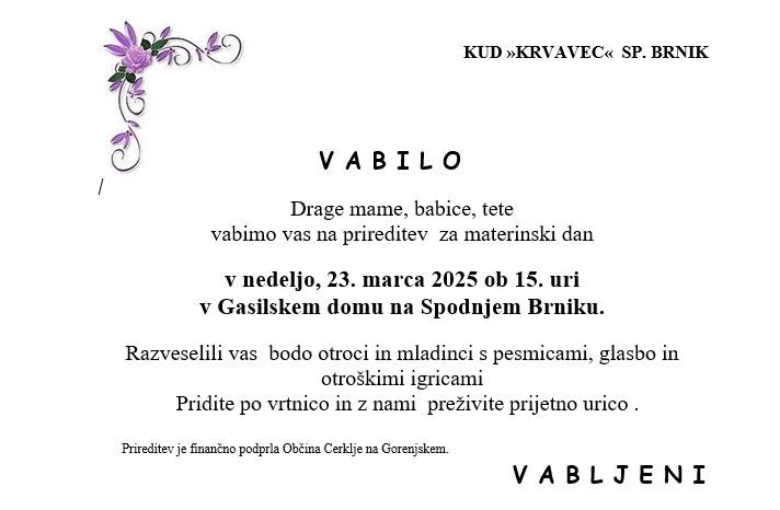 Prireditev je finančno podprla Občina Cerklje na Gorenjskem.