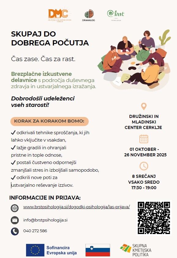 BRST psihologija in DRAMALOG gledališka pedagogika v sklopu projekta Socialna vključenost skozi ustvarjalnost in povezanost vabita na osemtedenski program, namenjen osebni rasti, krepitvi duševnega zdravja in povezovanju preko aktivnih vsebin.
