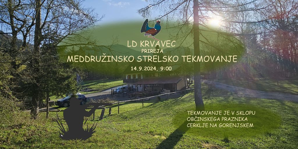VABILO Lovska družina Krvavec prireja v sklopu občinskega praznika meddružinsko lovsko strelsko tekmovanje. Tekmovanje bo pri lovskem domu na Štefanji gori, dne 14.09.2024 s pričetkom ob 9. uri. strelja se posamezno v kombinaciji (člani, veterani in superveteran) strelja se ekipno v kombinaciji (ekipo sestavljajo trije člani iste LD) za posamezno kombinacijo se lahko prijavite ponovno, vendar samo 1x strelja se 20 glinastih golobov - lovski stav MK tarča se strelja sede s prislonom na veteransko tarčo s krogi (trije streli za preizkus ter 5x po 2 strela v vsak nadaljni krog-tarčo v bežečega merjasca se strelja 10 strelov - (5 levo in 5 desno) vsak tekmovalec uporablja svoje MK orožje istocasno pa bo potekalo tudi nagradno tekmovanje na bezecega merjasca s štirimi streli. ob koncu pa še tradicionalno tekmovanje na izpadanje "ABJAJC ". Za dobro malico in žejo pa bo poskrbel naš lovec Jože Vijudno vabljeni.Propozicije :