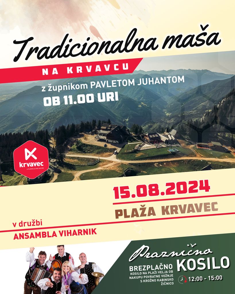 Ob prazniku Marijinega vnebovzetja, ki bo v četrtek, 15. 8. 2024, ob 11.00 uri, na PLAŽI KRVAVEC.