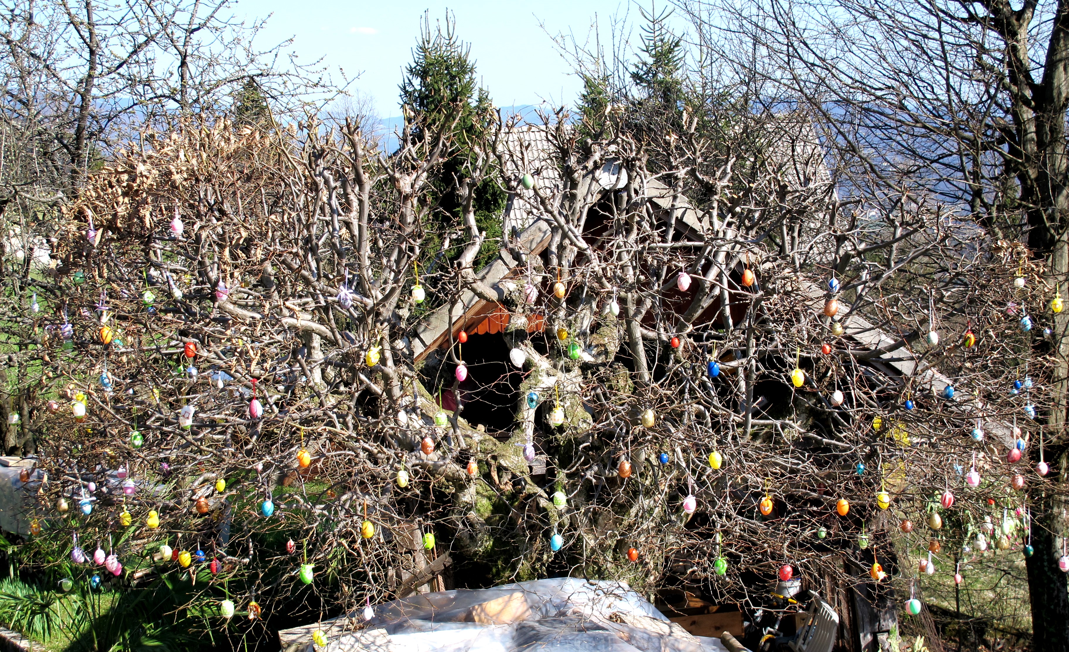 Pred velikonočnimi prazniki sta v Apnem pod Krvavcem ob stanovanjski hiši Lojzka in Ciril Mrgole okrasila okoli tristo let staro drevo, gaber, s pirhi. Kot pravita, naj tudi zunanja drevesa zadihajo v duhu praznika.