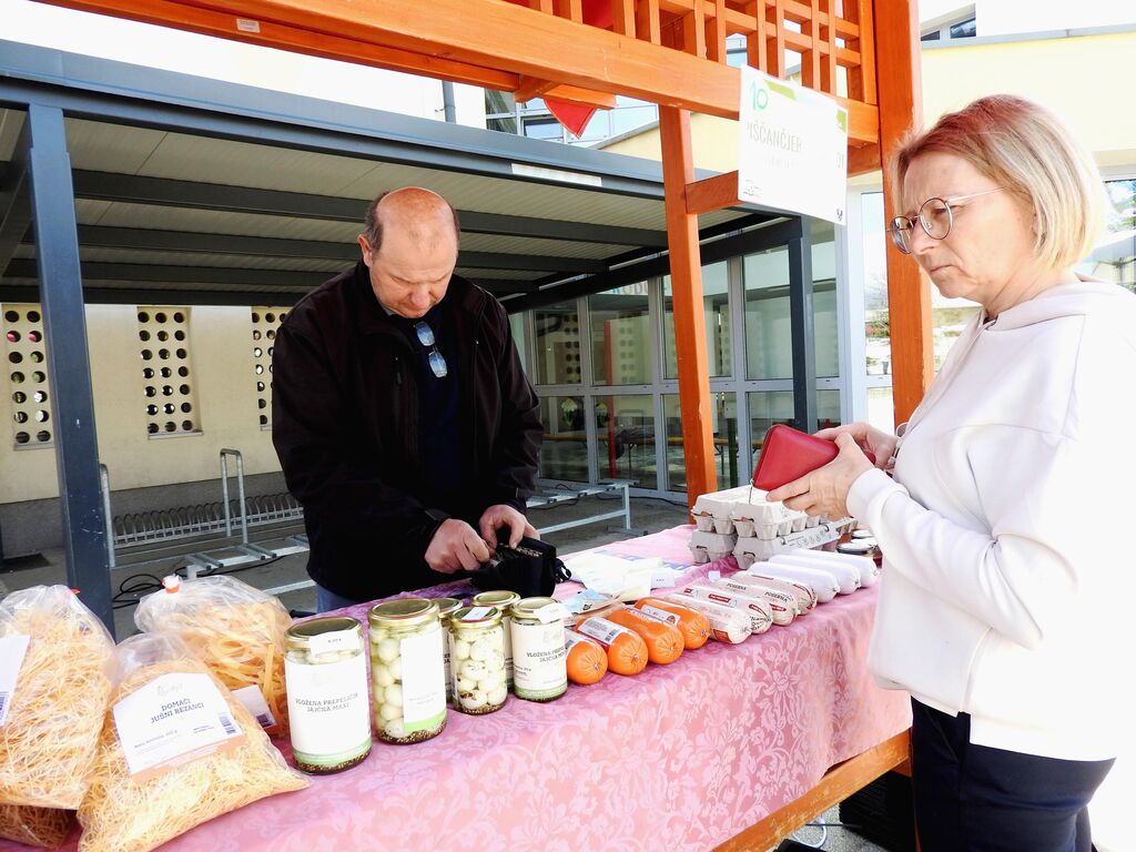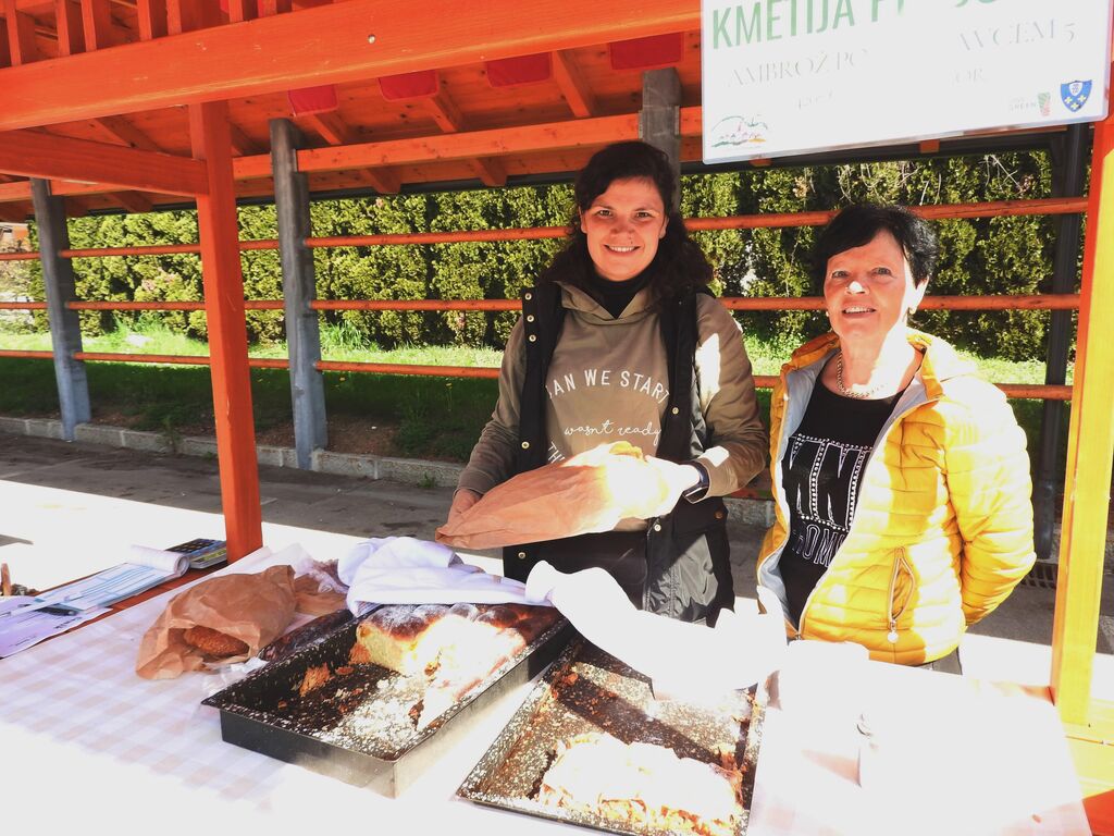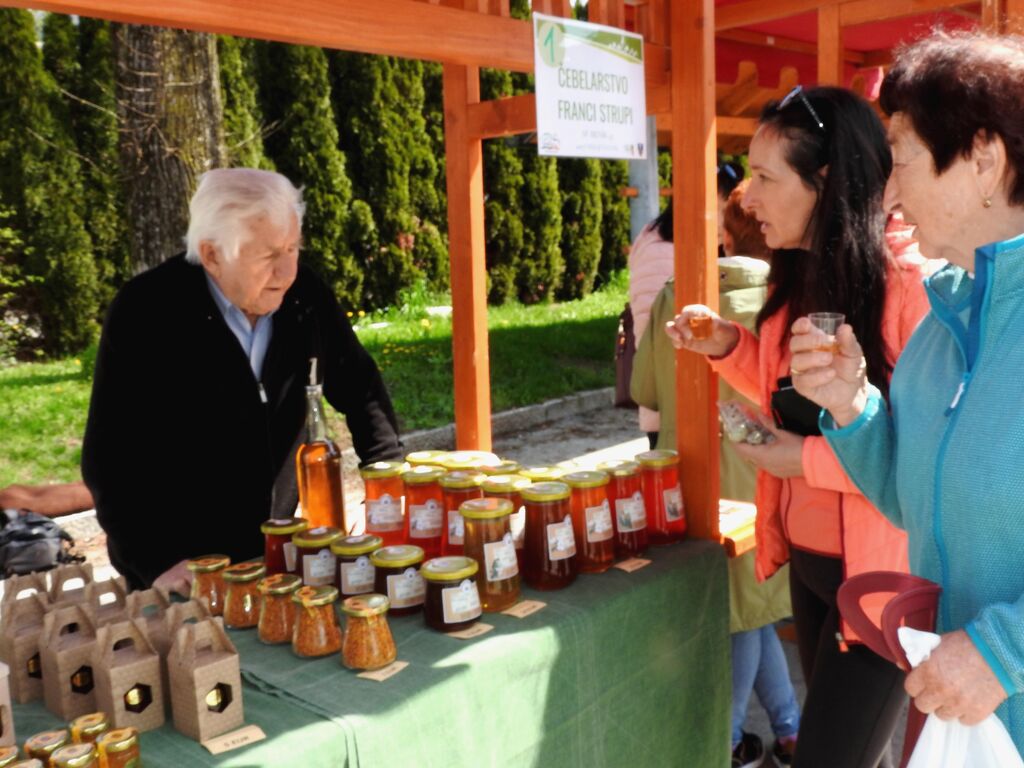 Nakupovali in izbirali so kupci lahko med dobrotami, ki so jih  pripravile kmečke žene Društva kmečkih žena  in deklet Gorenjski nagelj, kjer ste lahko kupili domači sveže pečen kruh iz krušne peči,  domače piškote, moko in tudi sadike jagod, predstavila se je  kmetija Galjot iz Lahovč, s piščančjo salamo in hrenovkami, mesnim sirom, pašteto, vloženimi in svežimi prepeličjimi in kokošjimi  jajci in rezanci, EA Sport pa je ponudila  sladkarije za otroke. Čebelar Franc Strupi iz Spodnjega Brnika  je obiskovalce razveseljeval z medom, cvetim prahom in cvetličnim  medom,  Kmetija Pr Dovar iz Ambroža pod Krvavcem, ki leži na nadmorski višini tisoč metrov, pa je ponudila kruh iz krušne peči, pekovske izdelke, domače salame, strojene ovčje kože in domače zeliščne čaje. Kmetija Prosen iz Cerkljanske Dobrave  je ponudila različne vrste testenin in piškote,  kmetija Pr Špan pa med, liofilizirano sadje in mešanice z medom. Obiskovalcem so bili na voljo tudi  unikatni izdelki iz žgane gline in lončarski izdelki Andreje Škulj - Atelje lončarstva.
