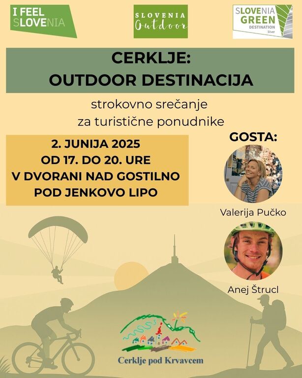 Zavod za turizem Cerklje vabi vse turistične ponudnike, lokalne akterje in outdoor navdušence na strokovno srečanje, posvečeno razvoju destinacije Cerklje kot privlačne in celovite točke za aktivne obiskovalce.