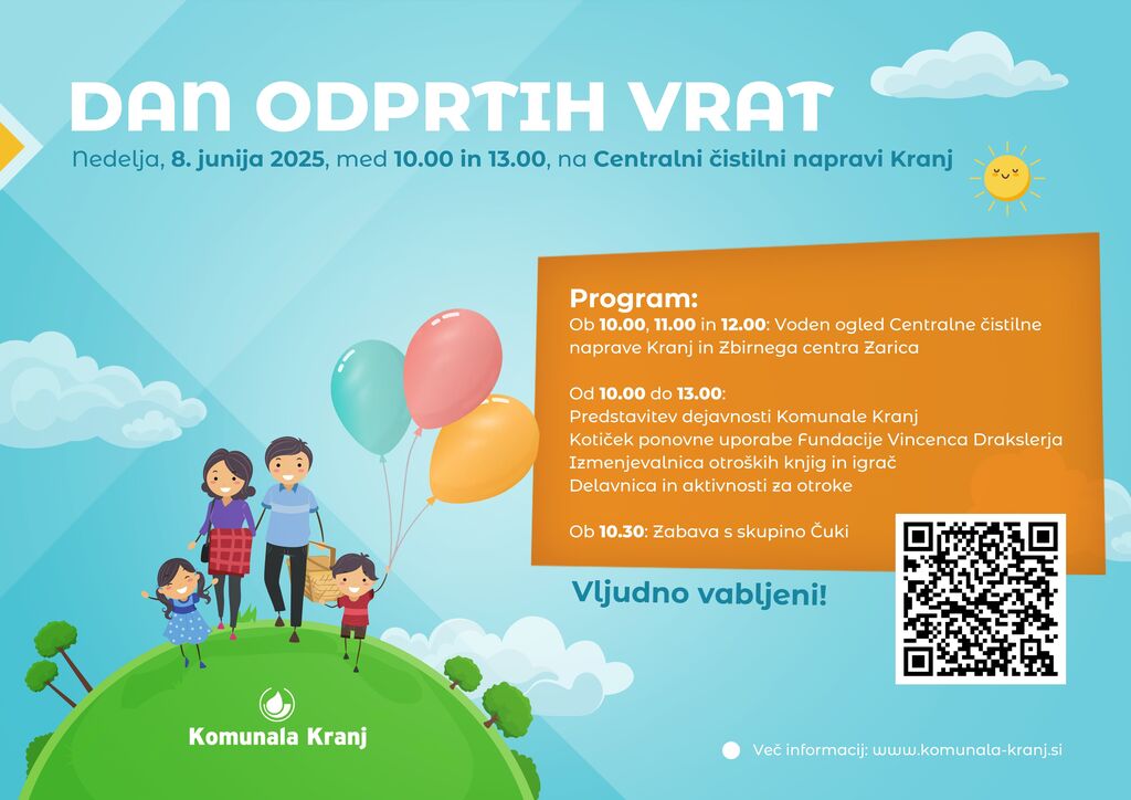 Dan druženja, učenja in zabave bo v nedeljo, 8. junija 2025, med 10.00 in 13.00 na Centralni čistilni napravi Kranj (Savska Loka 31, 4000 Kranj).