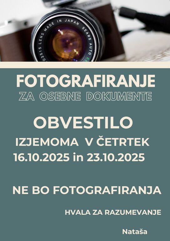 Fotografiranje za osebne dokumente – KU Cerklje 16. in 23. oktober 2025 – ZAPRTO