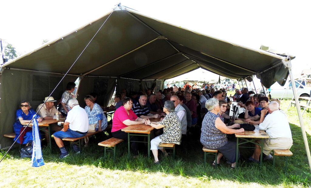 Na pikniku upokojencev se je zbralo več kot dvesto petdeset članov. Zavetje pred vročino so poiskali pod šotoroma.