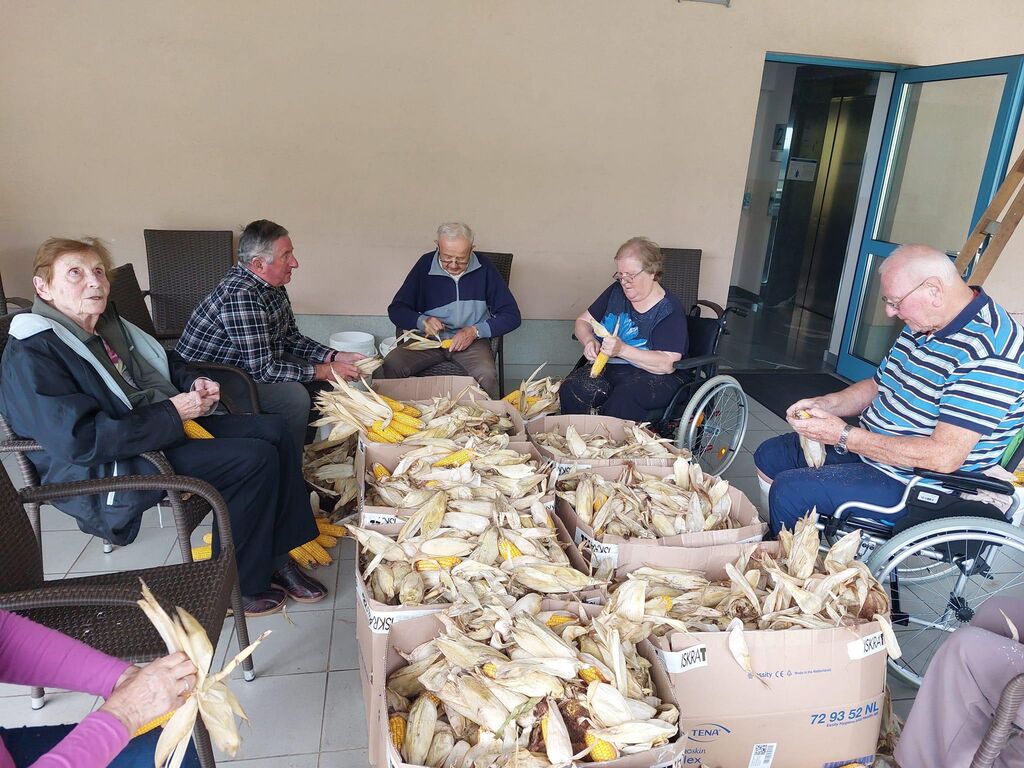 Ličkanje ali kožuhanje koruze, kot se temu opravilu reče v različnih krajih naše domovine, je pred desetletji veljalo za najpomembnejše jesensko kmečko opravilo. To je bil tisti kmečki običaj, ki je na kmetijah krajšal oziroma popestril jesenske večere. Odkar delo že na njivi opravijo stroji, ta čar izginja. Ob večerih so se ob kupu koruze zbrali domači, sosedje, znanci, sorodniki in se lotili ročnega ličkanja koruze, kar za številne predstavlja lepe spomine. Ličkanje koruze so letos pripravili tudi v Domu starejših Taber v Šmartnem pri Cerkljah, ki se ga je udeležilo več kot 40 stanovalcev doma. Tovrstna dela, tudi ličkanje koruze  opravljajo radi, druženje pa jim  je bilo izredno prijetno. Večina stanovalcev je v mladosti vsako leto ličkala koruzo, se pa vsako leto najde še kdo, ki se z ličkanjem koruze sreča prvič. Po končanem ličkanju so koruzo obesili, da se posuši, pozimi pa jo bodo stanovalci » rofkali«. V Tabru so stanovalci sami ličkali koruzo, pri prinosu koruze jim je pomagal hišnik Boštjan, pri obešanju  pa sta stanovalcem pomagala varuha Sara in Sebastijan. In ker pri druženju ob ličkanju ne sme manjkati pesem, so poskrbeli stanovalci doma.
