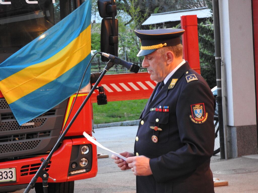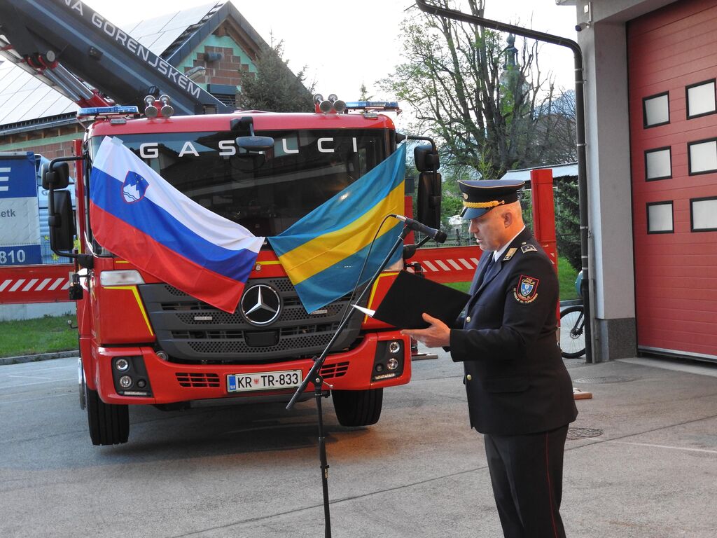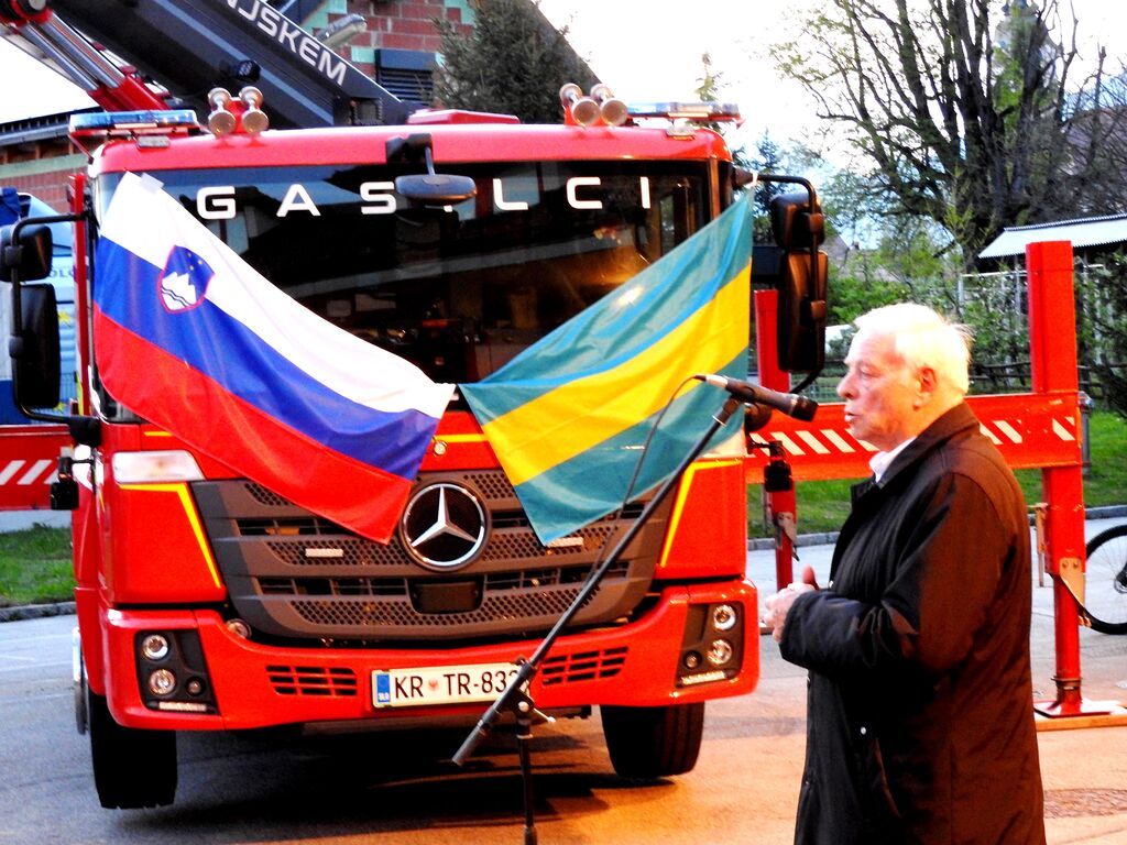 Župan Čebulj je cerkljanskim gasilcem zaželel varno vožnjo in čim manj odhodov na intervencije, predsednik GZ Cerklje Marjan Luskovec pa se je zahvalil županu Občine Cerklje, občinski upravi in Občinskemu svetu za vso dosedanjo podporo. Besedilo in foto Janez Kuhar.