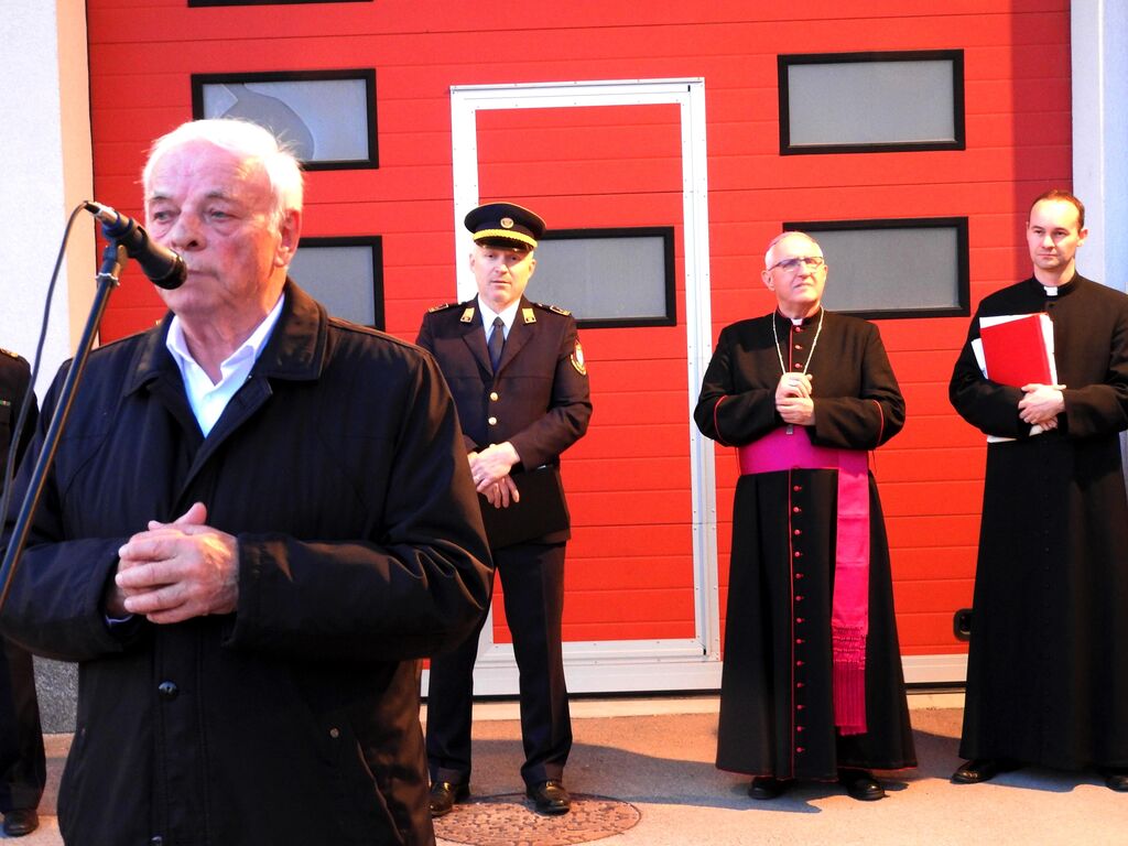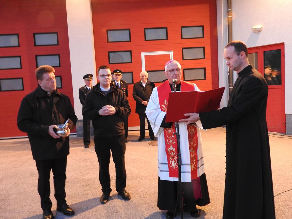 Nadškof msgr. Zore blagoslovil gasilsko vozilo, ki ima teleskopsko dvigalo z reševalno košaro