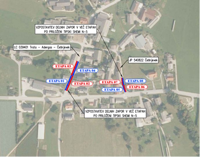 Občina Cerklje na Gorenjskem obvešča, da bo v naselju Češnjevek (smer Adergas) vzpostavljena delna in občasno popolna zapora občinske javne poti in lokalne ceste, od 7. 3. 2022 do vključno dne 13. 5. 2022, zaradi izgradnje vodovodnega omrežja. Udeležence v prometu prosimo, da upoštevajo spremenjeno prometno signalizacijo.