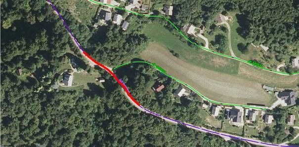 Grafični prikaz območja zapore občinske ceste (rdeče):
