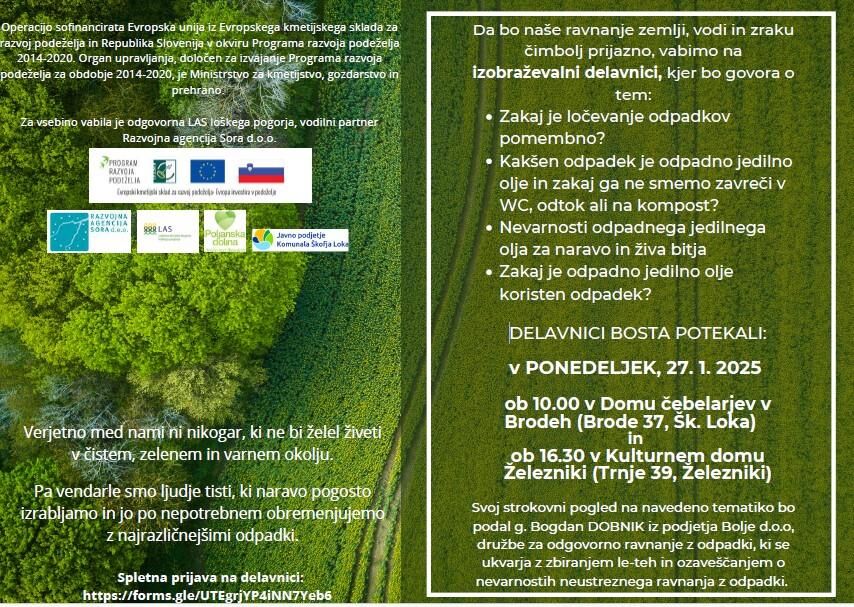 Razvojna agencija Sora v okviru projekta Čisto Škofjeloško vabi na zelo zanimivo predavanje o odpadnem jedilnem olju.