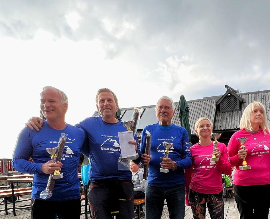 Po prihodu na Krvavec je sledila prijetna pogostitev, ki je bila namenjena ne samo okrepitvi udeležencev, ampak tudi podelitvi priznanj in nazivov. Med kar 76 člani, ki so se udeležili te rekreativne akcije, jih je kar 37 članov prejelo z 52 vpisi ali več, prestižen naziv Junak Krvavca, od tega kar 9 članic.