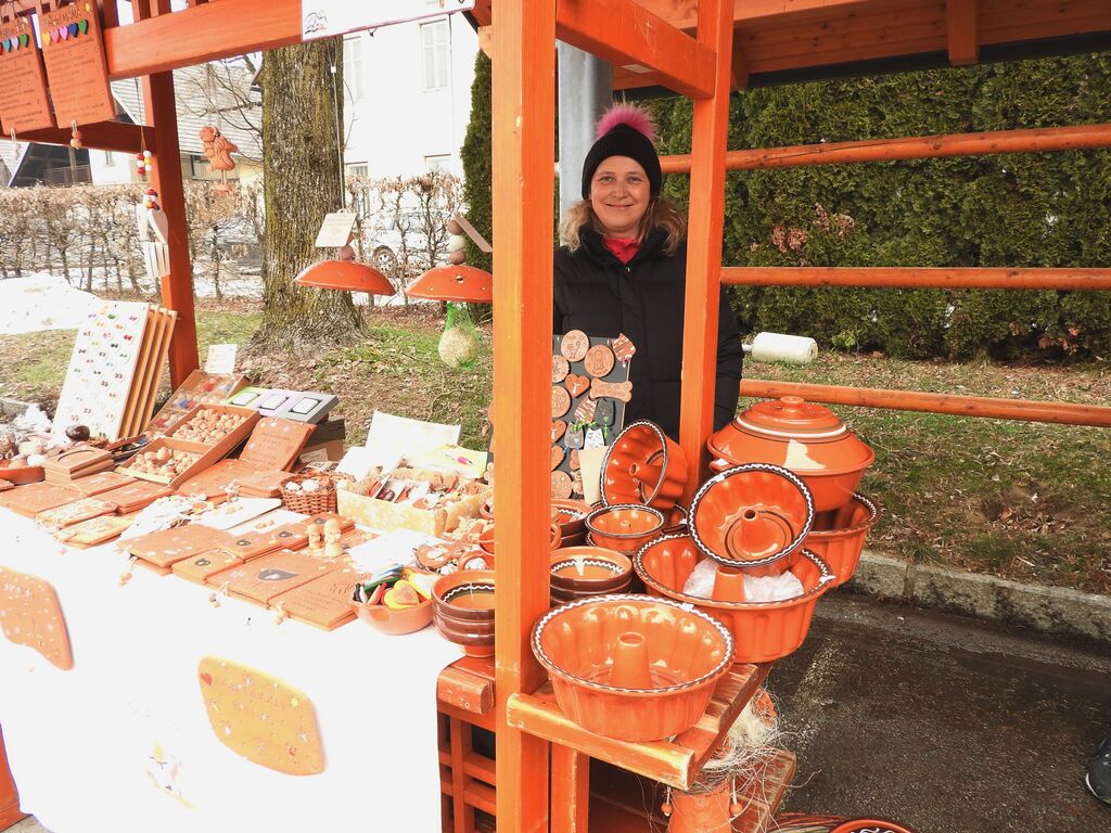 Obiskovalcem so bili na voljo tudi unikatni izdelki iz žgane gline in lončarski izdelki Andreje Škulj - Atelje lončarstva, Elvira Kralj iz Podnarta pa je ponudila kvačkane in klekljane izdelke. Besedilo in foto Janez Kuhar, Cerklje,19.2.2023