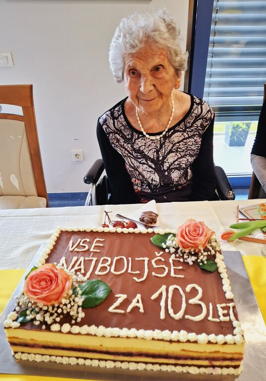 Stotretji rojstni dan je Slavica praznovala vesela in dobre volje ter prejela številne čestitke, rdeča nit vseh pa je bila želja po dobrem zdravju in zadovoljstvu. Kot se za tak praznik spodobi, je slavljenka prejela tudi rojstnodnevno torto, ki so jo pripravili v Domu Taber, izdelala pa jo je Biljana Bučič.