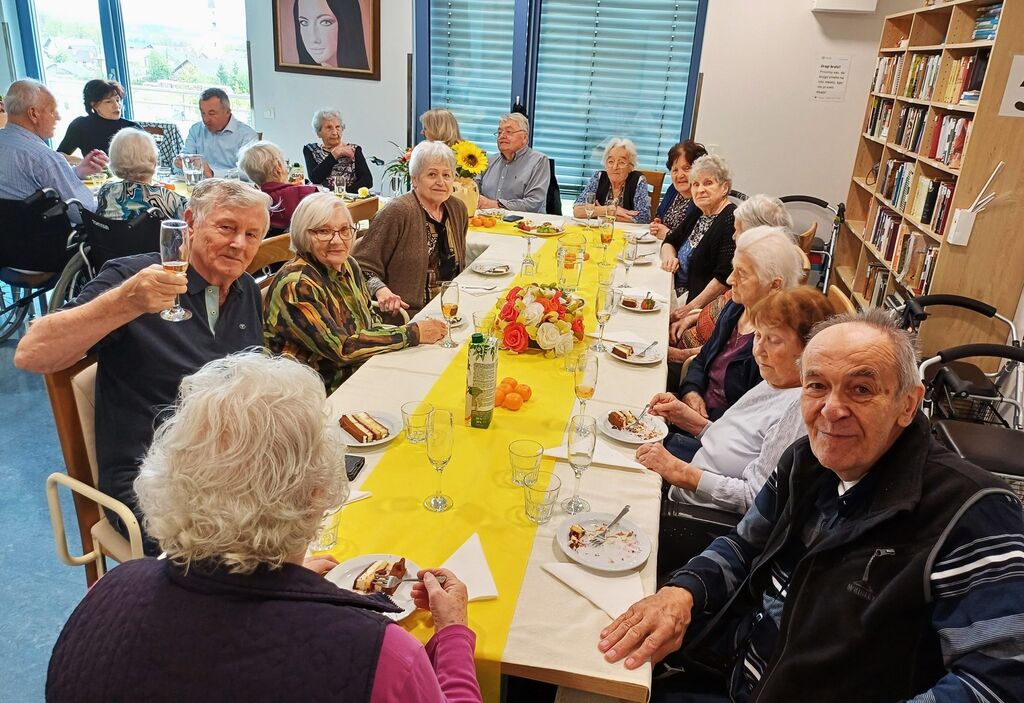 Slavljenki je na krajši slovesnosti v imenu zaposlenih Doma Taber čestitala direktorica Martina Martinčič in ji zaželela obilo zdravja ter dobre volje, dve pesmi pa so ubrano zapeli dijaki drugega letnika Škofijske klasične gimnazije iz Šentvida, ki so bili v Domu Taber na socialnem praktikumu. Nad pesmima je bila navdušena. Slavljenki so voščili ob njenem prazniku tudi sostanovalci iz njenega oddelka, med njimi najbližji stanovalka Mira Jančar in Ivana Drobnič.
