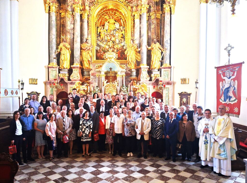 Zbrali so se v župnijski cerkvi Marijinega Vnebovzetja, kjer sta zahvalno mašo sta darovala zaporniški duhovnik Robert Friškovec in župnik župnije Cerklje na Gorenjskem Martin Leban, ki se je zakoncem zahvalil, da že leta in leta vztrajajo in negujejo zakon. Spregovoril je tudi o pomenu zakonskega življenja. Podaril jim je priložnostno darilo. Ob koncu slovesnosti pa je sledilo še skupno fotografiranje pred glavnim oltarjem župnijske cerkve Marijinega Vnebovzetja. V letih zakonskega življenja so marsikaj prestali – a še vedno so ostali skupaj, kot pred poroko, ker se imamo še vedno radi, ker drug drugega spoštujemo, si zaupamo in pomagamo. Po maši so se vsi skupaj zbrali v župnijski dvorani škofa Jožefa Kvasa, Nekateri se niso videli že zelo dolgo. Med pogovorom so obujali spomine na prehojena pota. Jubilanti so si zaželeli še obilo zdravja, družinske sreče in da bi še velikokrat skupaj praznovali okrogle obletnice. Med sveto mašo je pel cerkveni mešani pevski zbor župnije Cerklje pod vodstvom prof. Damijana Močnika. Na orgle je pevce cerkvenega pevskega zbora spremljala prof. Damijana Božič Močnik.