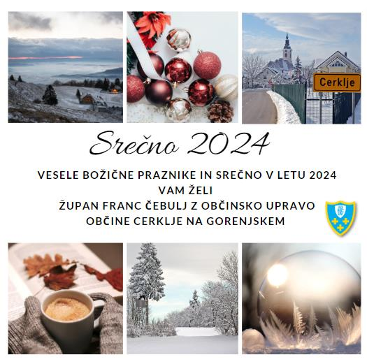 Vesele božične praznike in srečno v letu 2024 vam želim župan Franc Čebulj z občinsko upravo Občine Cerklje na Gorenjskem.
