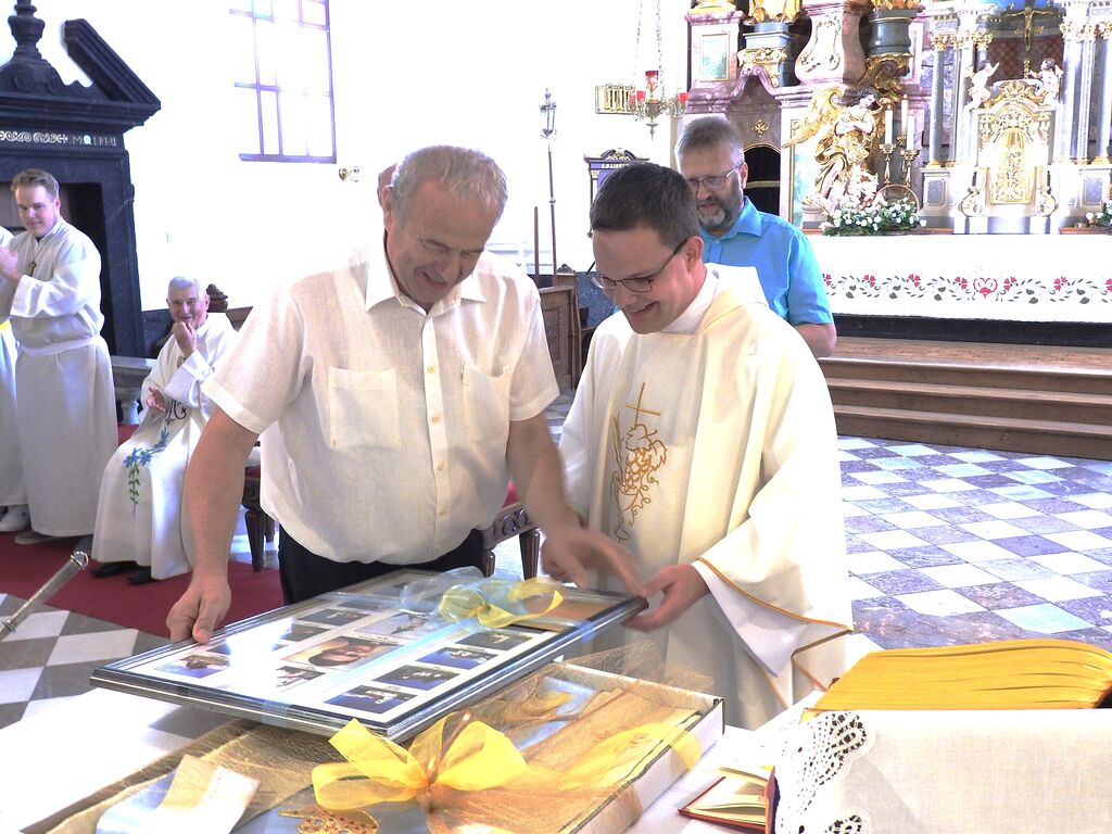 Ob zaključku svete maše je župnik Martin Leban izrekel še nekaj besed zahvale. »Zelo sem vesel, da so med nami moji domači, ki ste tudi na nek način doprinesli k današnjemu praznovanju. Brez vas ne bi bil danes to kar sem in hvala za vse. Hvala vsem, ki ste tako lepo okrasili cerkev, postavili visok mlaj, še posebej pa velja zahvala ključarjema Janezu in Matjažu za vso koordinacijo, kot tudi mladim. Hvala pevcem za prelepo prepevanje in ministrantom za lepo sodelovanje, kot gospodinji Angelci.