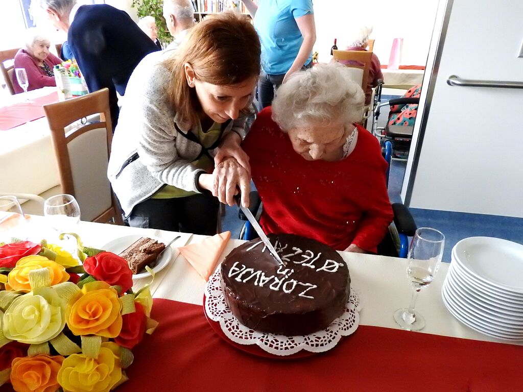 Stoprvi rojstni dan je Slavica praznovala vesela in dobre volje ter prejela številne čestitke, rdeča nit vseh pa je bila želja po dobrem zdravju in zadovoljstvu. Kot se za tak praznik spodobi, je slavljenka zarezala v dve rojstnodnevni torti, eno so pripravili v Domu Taber, ki jo je izdelala vodja kuhinje Biljana Bučić, drugo torto pa so ji prinesli sorodniki, nečaka Iztok Dernovšek in Anton Mastrel in nečakinja Stanislava Mastrel.