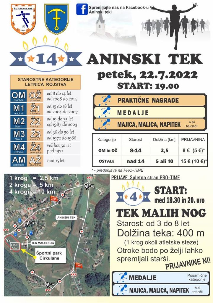 Vabimo vas na 14. ANINSKI TEK, ki bo v petek, 22. 7. 2022, ob 19. uri.
