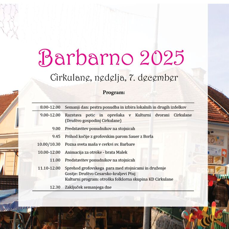 Vabimo vas na tradicionalno prireditev Barbarno v Cirkulanah, ki bo potekala v nedeljo, 7. 12. 2025.