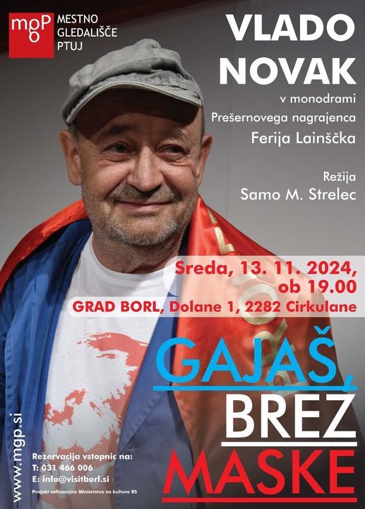 V letošnjem letu spomladi je grad Borl na široko odprl vrata za javnost. Upravljanje gradu je skladno s pogodbo prevzel Javni zavod Belana Cirkulane in ga pričel oživljati, skupaj z Občino Cirkulane, lokalnimi deležniki in vsemi vami, ki ste v tem času obiskovali grad Borl. V sodelovanju z Ministrstvom za kulturo, ki je na javnem razpisu za kroženje kulturnih projektov v letu 2024 podprlo predlagani projektni predlog »Gostovanje: Gajaš brez maske z javnim pogovorom«, vas vljudno vabimo, da se nam pridružite na delavnici spodbujanja razvoja občinstev in vključevanja gradu Borl v kulturne programe in izboljšanje dostopnosti le teh za prebivalce na podeželju.