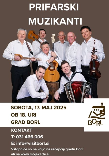vabimo vas, da preživite sobotni večer v objemu grajskega vzdušja, saj bo v soboto, 17. maja 2025, ob 18. uri, na gradu Borl zvenela glasba s srcem – koncert Prifarskih muzikantov.
