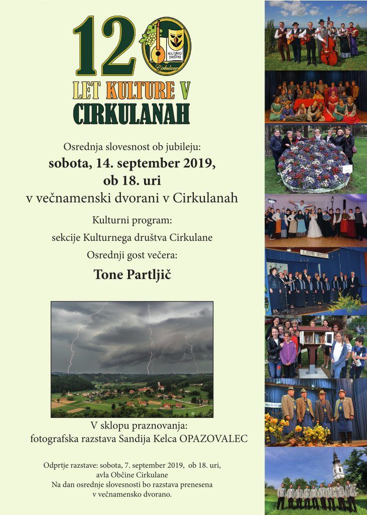 Kulturno društvo Cirkulane vabi na slovesnost ob svoji 120-letnici, ki bo v soboto, 14. septembra 2019 ob 18. uri v večnamenski dvorani v Cirkulanah.