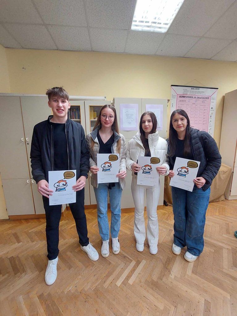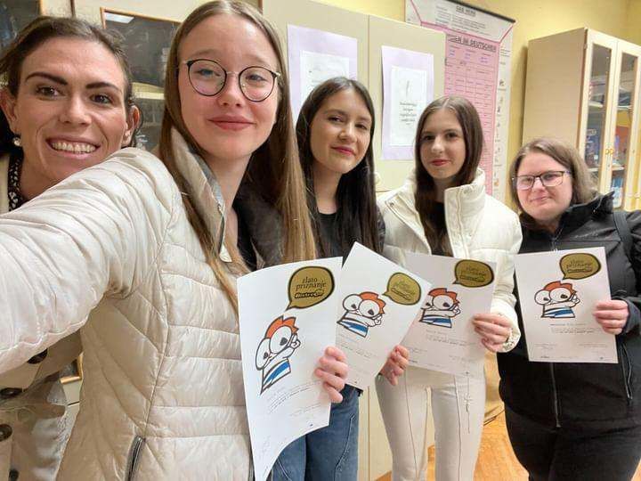Skupino s področja slovenščine so pod mentorstvom učiteljice Laure Mohorko Kumer in somentorstvom učiteljice Nike Lorbek, zastopale naše devetošolke: